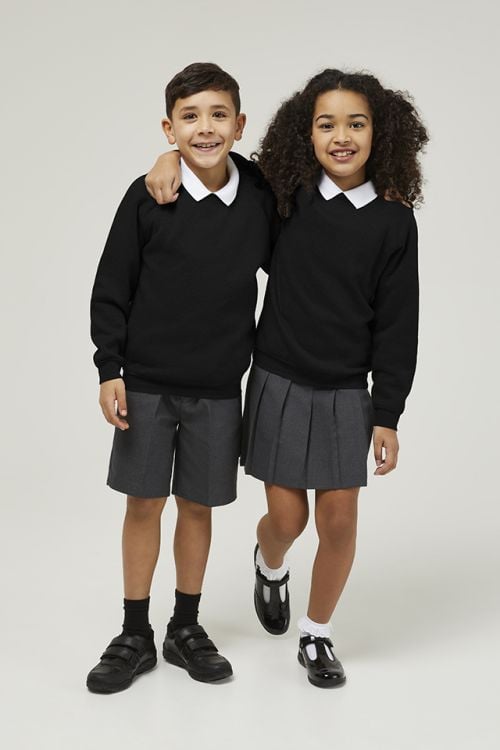 Iconic school sweatshirt. Twin needle coverseams on neck. Raglan sleeve cuffs and waistband for extra durability. Herringbone back neck tape. Spotshield stain resistant coating for fabric protection. Fade resistant.